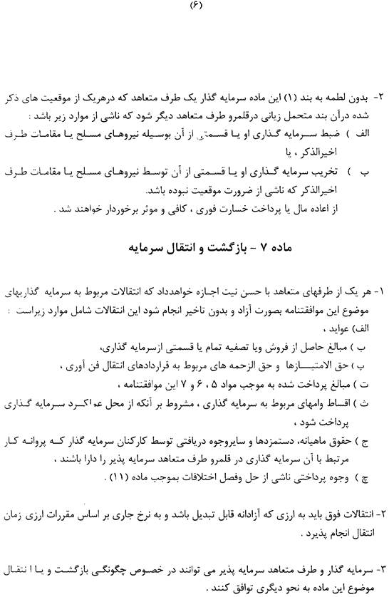Dieser Artikel bildet eine notwendige und klarstellende Ergänzung zu den vorangegangenen Artikeln, besonders zu den Artikeln 5 und 6. Er sieht das Verfügungs- bzw. Repatriierungsrecht des Investors über alle vorher genannten Vermögenswerte durch Regelung der Überweisbarkeit von Zahlungen aus dem Hoheitsgebiet einer Vertragspartei vor.