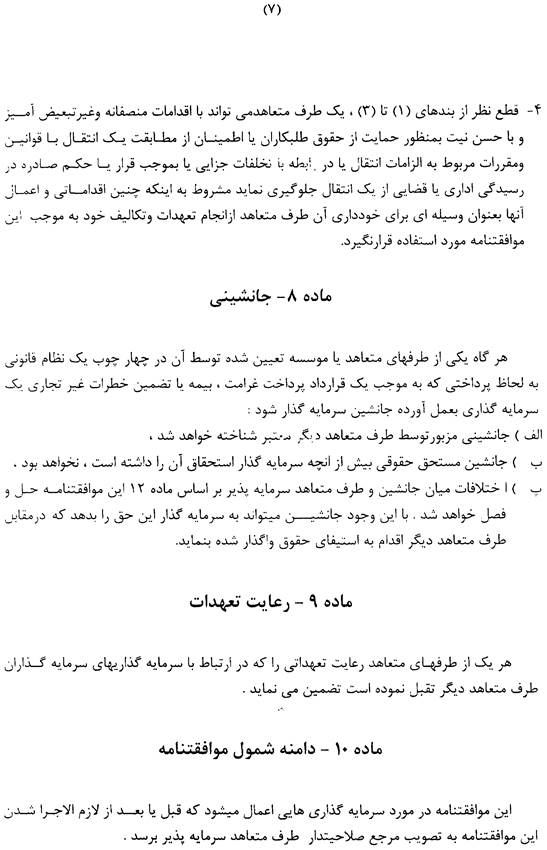 Da Investitionen seitens öffentlicher Stellen des Staates, dem der Investor angehört, vielfach mit Garantien ausgestattet werden, sieht dieser Artikel vor, dass im Falle des Eintrittes des Garantiegebers in die Rechte des Garantienehmers dieser Eintritt von der anderen Vertragspartei anerkannt wird.
