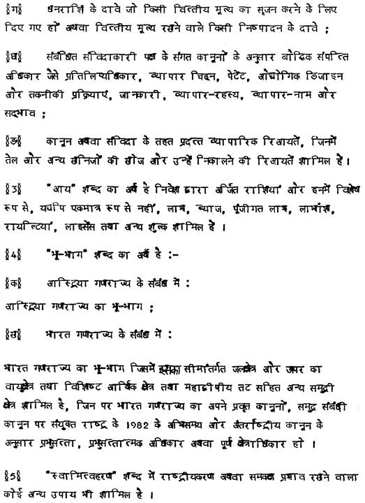 das Hoheitsgebiet der Republik Indien einschließlich ihrer Hoheitsgewässer und des über ihr liegenden Luftraums und anderer Seezonen, einschließlich der ausschließlichen Wirtschaftszone und des Festlandsockels, über die die Republik Indien in Übereinstimmung mit ihren gültigen Rechtsvorschriften, des Seerechtsübereinkommens der Vereinten Nationen von 1982 und dem Völkerrecht Souveränität, souveräne Rechte oder ausschließliche Zuständigkeit ausübt.