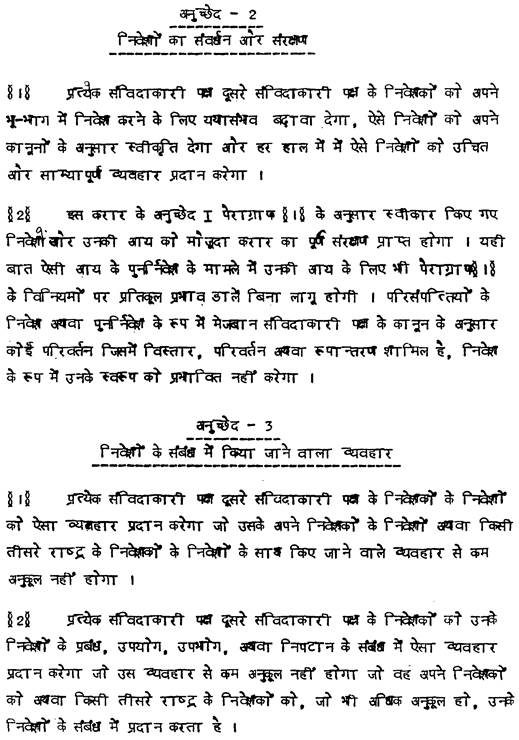 Das vorliegende Abkommen hat die Förderung und den Schutz von Investitionen zum Gegenstand und regelt auf der Grundlage der Gegenseitigkeit ua. die Entschädigungspflicht bei Enteignungen, die Frage von Überweisungen und Formen der Streitbeilegung. Das Abkommen beruht auf dem Prinzip der Meistbegünstigung und Inländergleichbehandlung – ausgenommen Vorteile, die sich aus Integrationsmaßnahmen uä. ergeben. Auf Grund dieses Vertragsinstrumentes ist jede Vertragspartei in der Lage, die Rechte ihres Investors im Investitionsland sicherzustellen und zu vertreten.