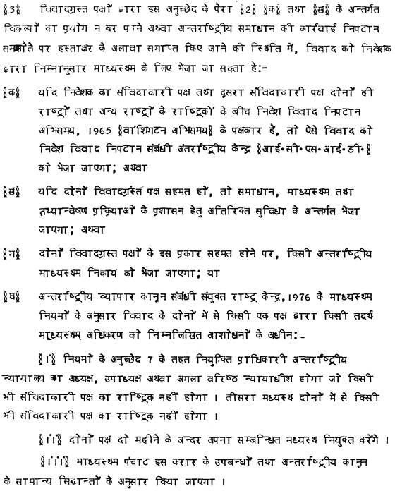 Bei Streitigkeiten zwischen einem Investor und einem Vertragsstaat soll im Sinne des Abkommens zunächst eine Beilegung auf freundschaftlichem Weg versucht werden. Können Streitigkeiten aus einer Investition zwischen einer Vertragspartei und einem Investor der anderen Vertragspartei, die auf dem Verhandlungswege nicht innerhalb einer Frist von drei Monaten beigelegt werden, so kann sie der Investor nach seiner Wahl den Behörden der Vertragspartei, in deren Gebiet er seine Investition getätigt hat, oder einem Streitschlichtungsverfahren nach den Regeln der UNCITRAL, oder dem Internationalen Zentrum für die Beilegung von Investitionsstreitigkeiten, im Sinne der Washingtoner Konvention über die Beilegung von Investitionsstreitigkeiten vom 18. März 1965, oder anderen Ad-hoc-Schiedsgerichten unterbreiten. Das Verfahren vor einem nach den Regeln von UNCITRAL eingerichteten Ad-hoc-Schiedsgericht ist ausführlicher geregelt.