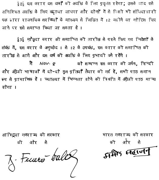 DONE at Vienna, on 8 November 1999, in two originals each in the German, Hindi and English languages, all texts being equally authentic. In case of difference of interpretation the English text shall prevail.