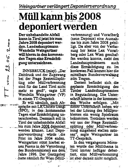 Frist für die Ablagerung unbehandelten Abfalls bis 31.12.2008 verlängert.(siehe