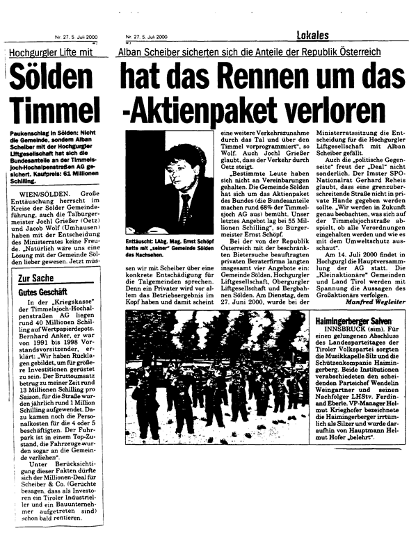 Timmelsjoch - Hochalpenstraßen AG an die Hochgurgler Liftgesellschaft zu veräußern. Diese