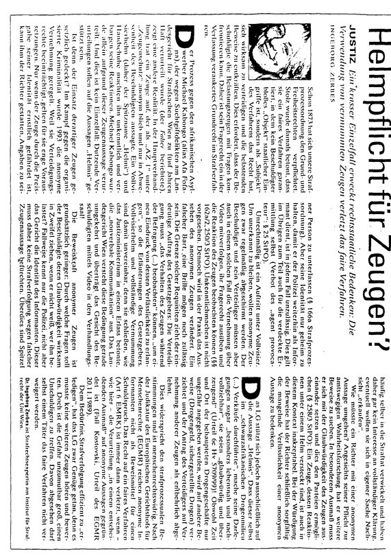 die Möglichkeit nicht als anonymer Zeuge aufzutreten?