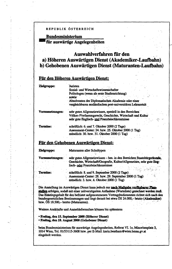 Im Standard vom Sa./So. 8./9. Juli 2000 findet sich im Inseratenteil eine Stellenausschreibung des