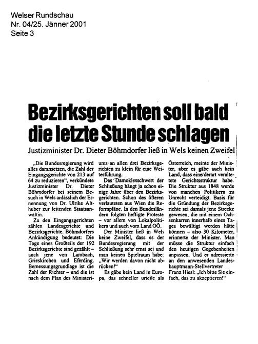 Einem Artikel der “Welser Rundschau” vom 25. Jänner 2001 (Beilage) ist unter der
