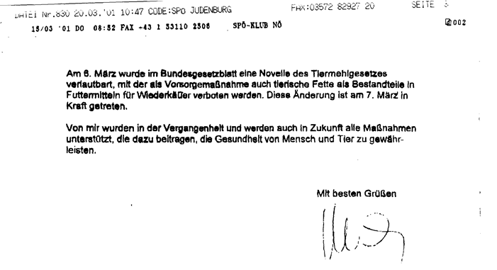 Fütterungs - Skandals in Österreich und der unklaren Situation der Übertragung der BSE