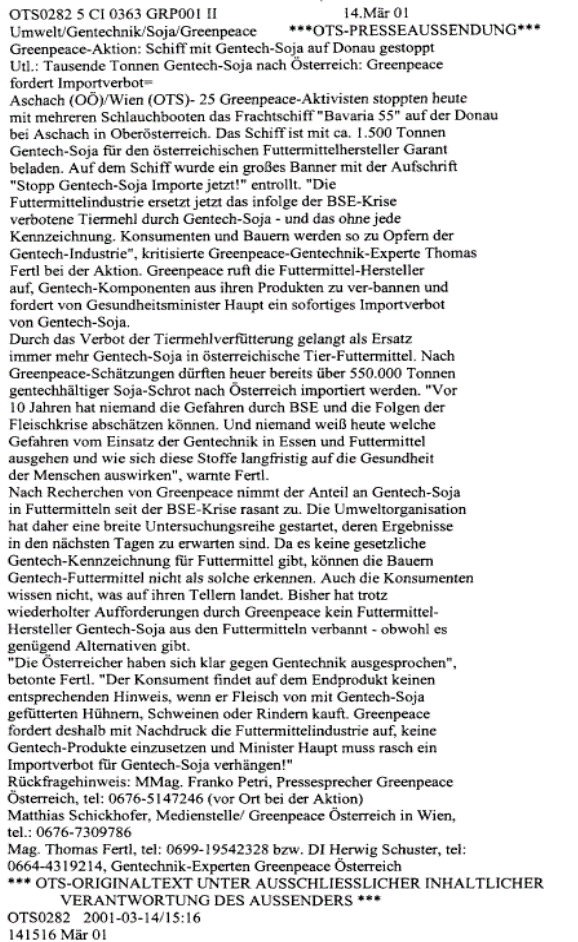 Österreich“ bei Aschach ein Frachtschiff mit genetisch verändertem Soja gestoppt. Diese