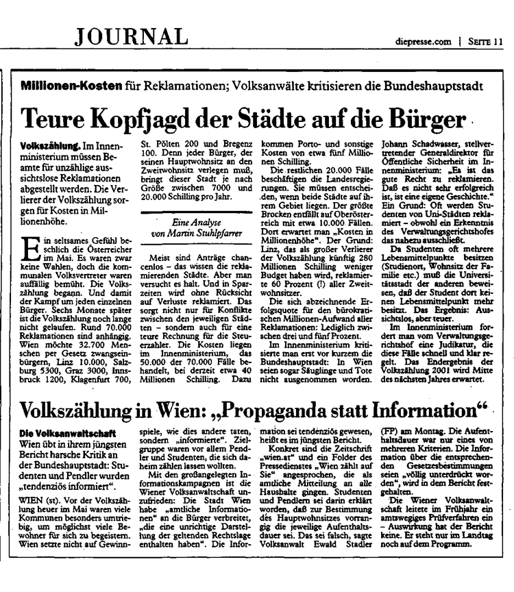 Bundesministerium für Inneres eine Vielzahl von Reklamationen, vorwiegend