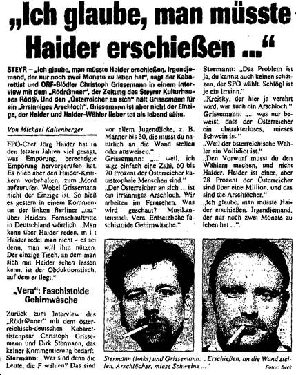 betreffend Aufforderung zum Attentat auf die Person von Dr. Jörg Haider