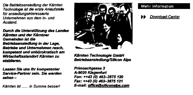 der Internetadresse http://www.siliconalps.com/deutsch/ findet sich