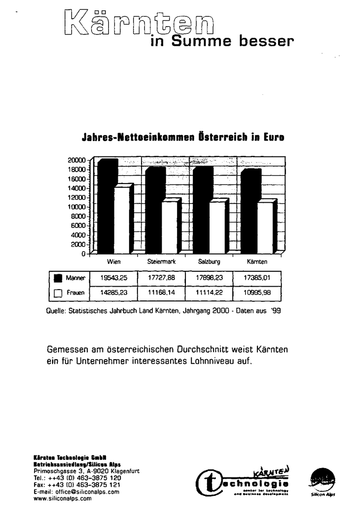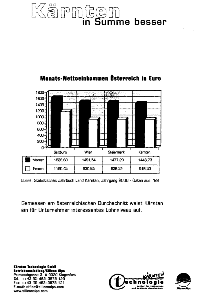 Einkommensdarstellungen von Frauen und Männern, die Kärnten immer