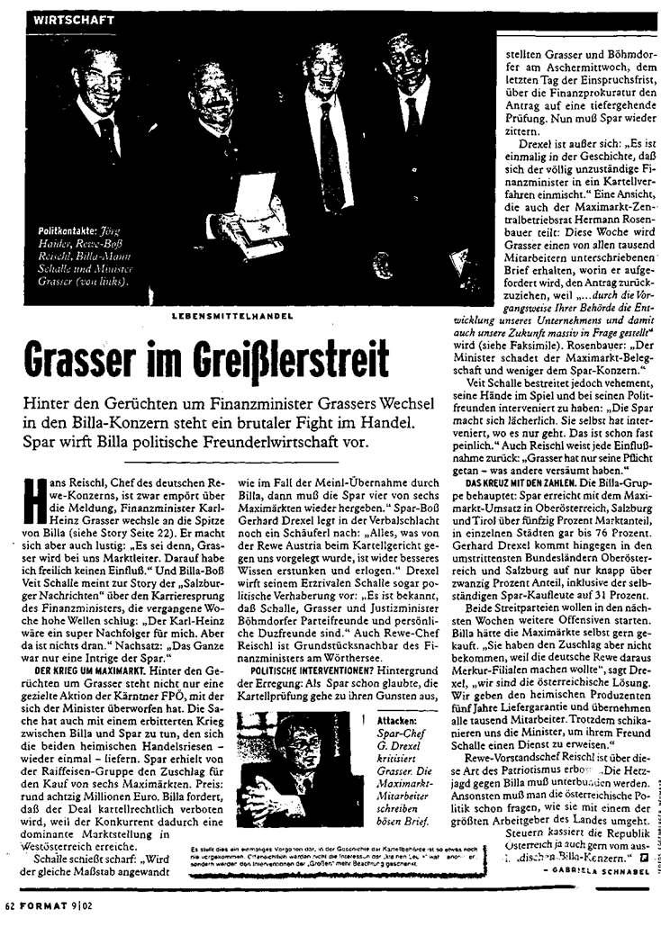 Wochenzeitschrift FORMAT berichtet in der Ausgabe 9/02 vom