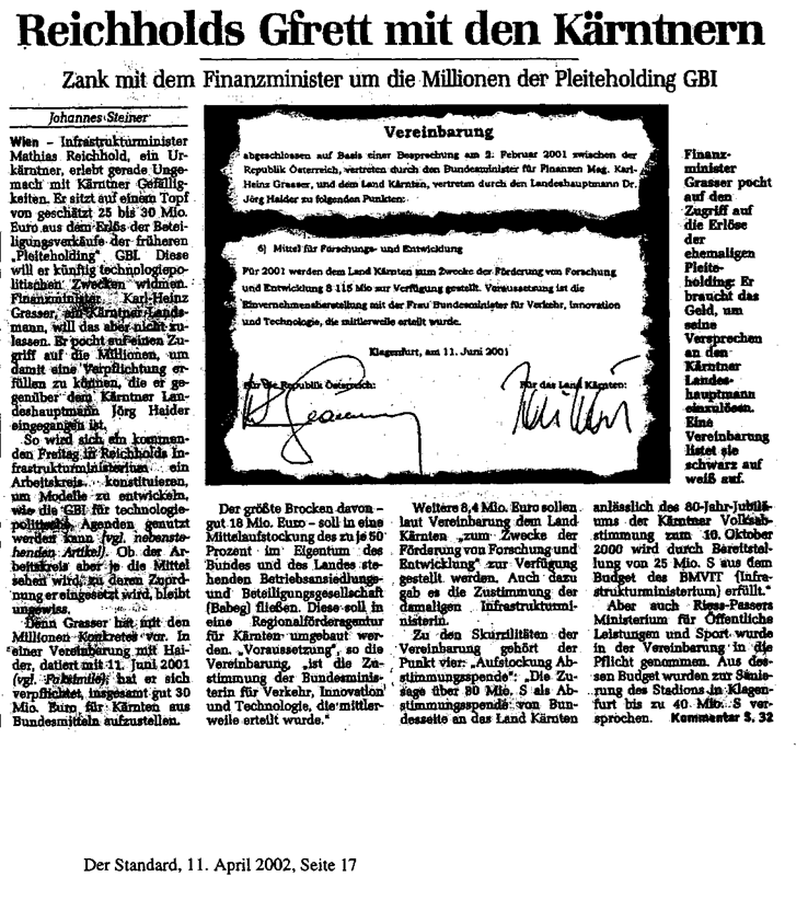 rund 31 Millionen Euro (rund 430 Mio. ATS) dem Land Kärnten zur