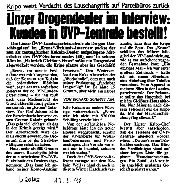 Medienberichten vom 16.2.1998 (Kronen-Zeitung), und vom 17.2.1998