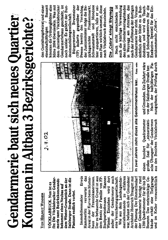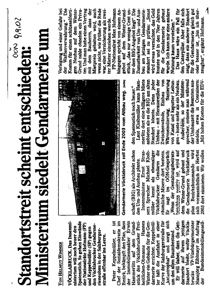 betreffend “Ungereimtheiten beim Gendarmerieneubau in Vöcklabruck"