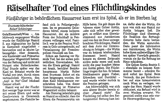 betreffend den Tod eines Flüchtlingskindes im „Gelinderen Mittel“