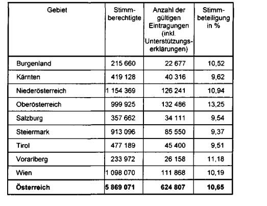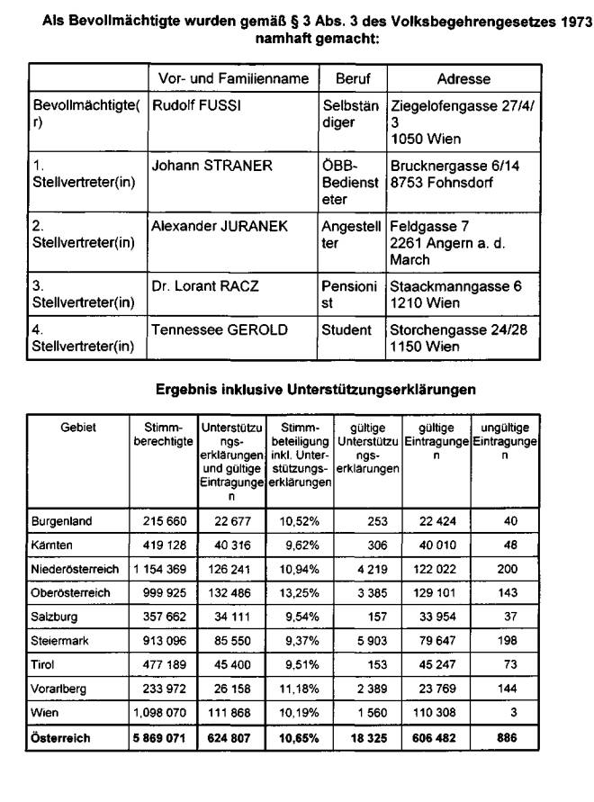 Volksbegehrengesetzes 1973, BGBI. Nr. 344, zuletzt geändert durch das