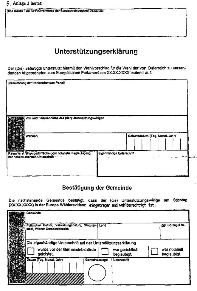 auch die Möglichkeit eingeräumt werden, eine Unterstützungserklärung für