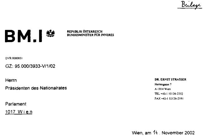 ausgeschlossen. Das Bundesministerium für Inneres hat in der entsprechenden