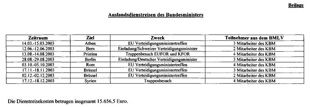 Inlandsdienstreisekosten sind für das Jahr 2003 bis dato 7.780,83 Euro