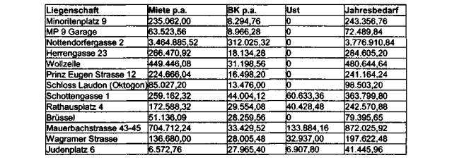 bereits veranlaßt. Weiters wurden im Jahre 2002 die Einmietungen in 1010 Wien,