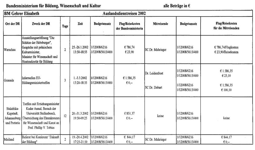 des Ministerbüros angeführten Personen sind zeitliche Mehr-