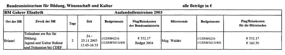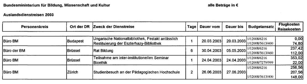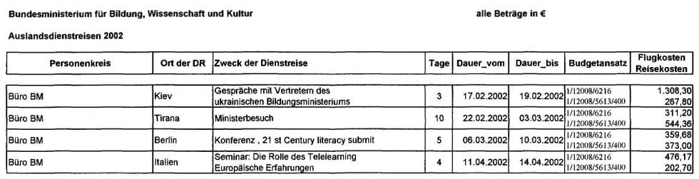 Mitverwendung im Ministerbüro mit Ende 2002