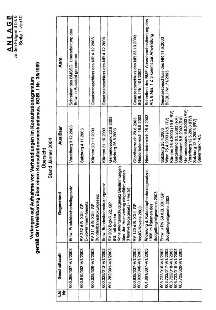 Ergebnisse des Konsultationsmechanismus kann der beiliegenden Liste ent-