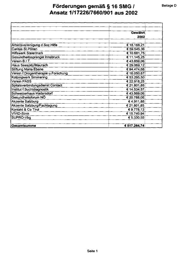 verrechneten Förderungen sind dem Förderungsbericht 2002 zu entnehmen.