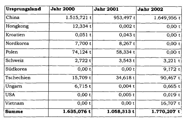 2000 bis 2002 wurden aus Drittstaaten folgende