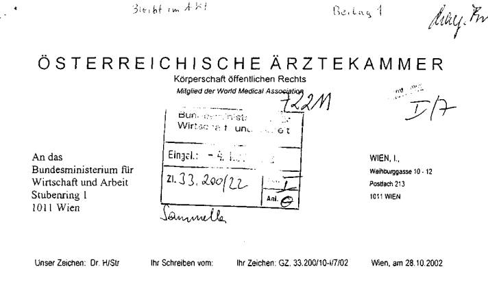 Stellungnahmen der Österreichischen Ärztekammer und der Wirtschaftskammer