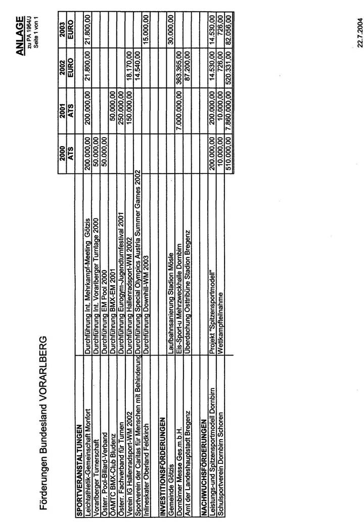 Bezüglich der Förderung in den Jahren 2000, 2001, 2002 und 2003 siehe Anlage.
