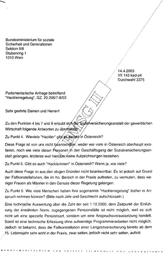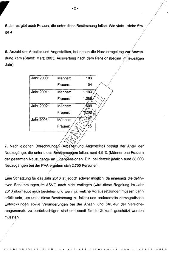 „Hacklerregelung" bis zum Jahr 2010 fortgeschrieben wird.