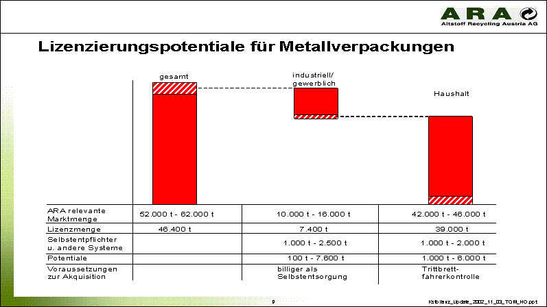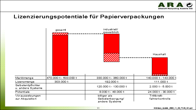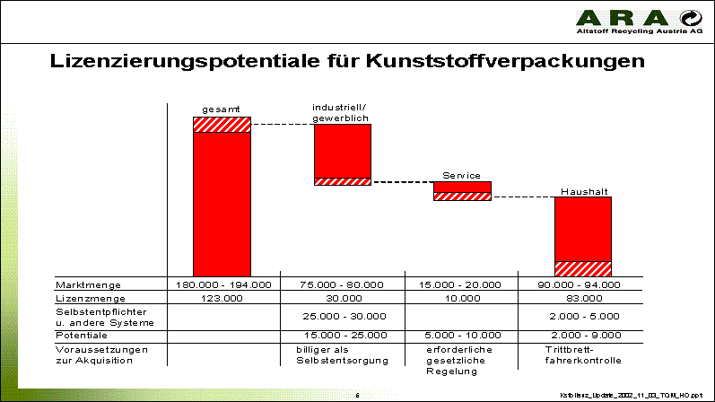 Laut Angaben der ARA AG sind für die Auswahl eines ARA-Lizenzpartners als Prüfkandidat vor allem folgende Kriterien maßgeblich:
