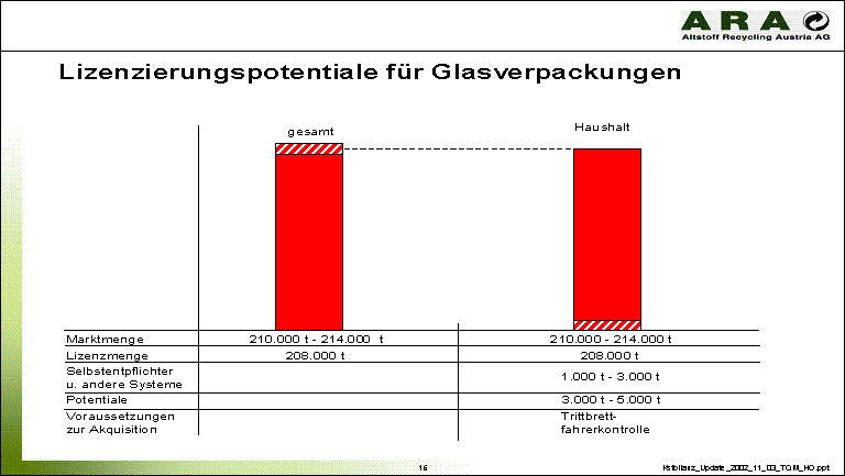 Da die ARA AG selbst kein genehmigtes Sammel- und Verwertungssystem ist, haben die jeweiligen Systembetreiber ArgeV und ÖKK AG ein derartiges Kontrollkonzept vorgelegt.