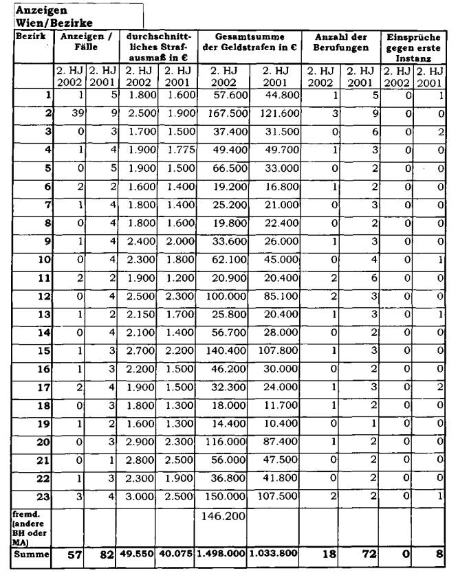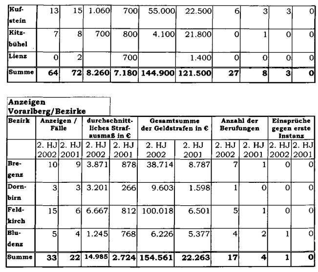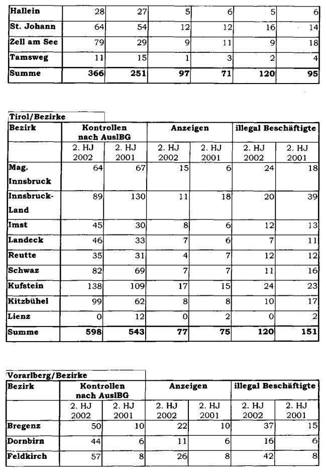 Arbeit übermittelten Unterlagen für die Jahre 2000, 2001 und das erste Halb-