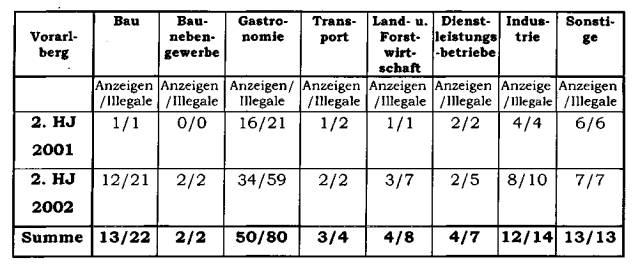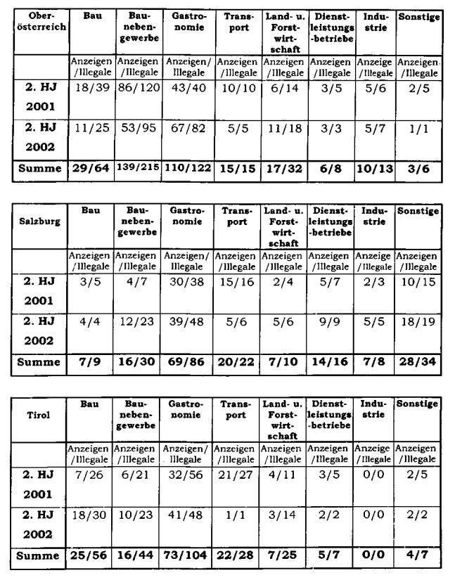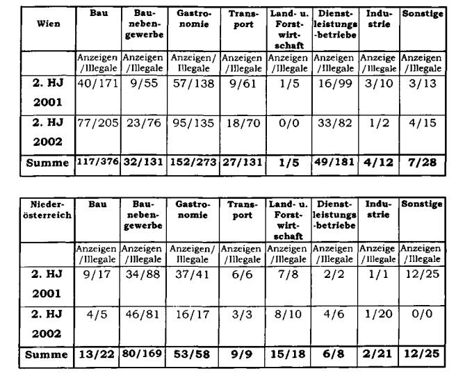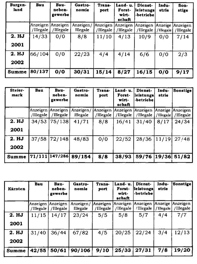 Anzeigen und die Anzahl der festgestellten illegal Beschäftigten