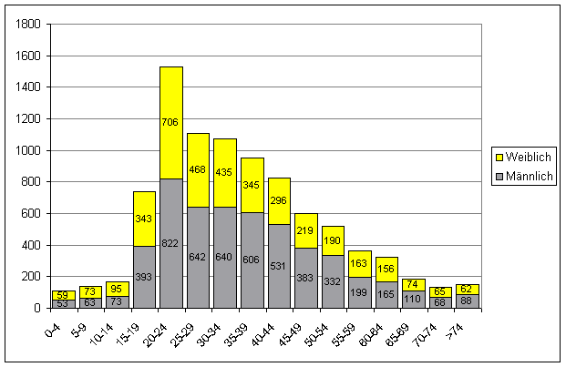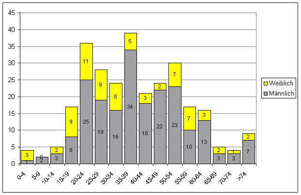 Der Anteil der Männer an den Verunglückten betrug 2003 und 2004 58%, der der Frauen 42%, von den Getöteten waren 74% männlich und 26% weiblich.