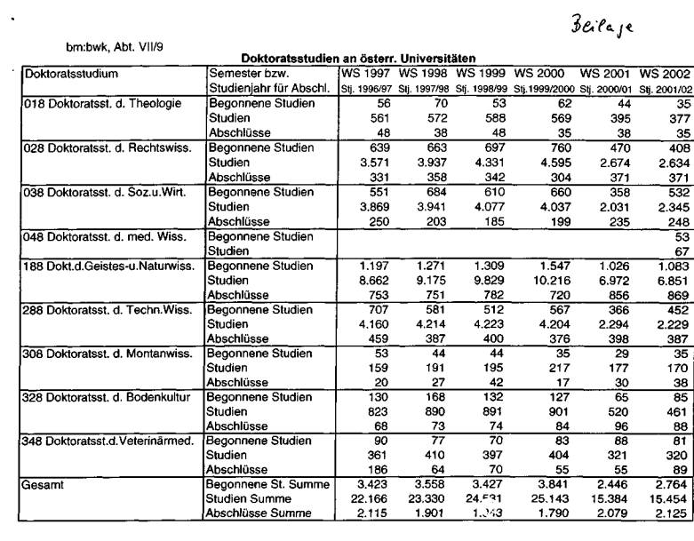 Doktoratsstudien wurde das Programm DOC-FFORTE neu eingerichtet.
