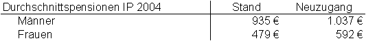 Die monatlichen Durchschnittspensionen (ohne Zulagen
