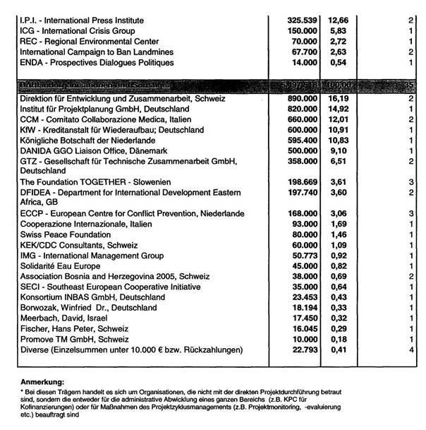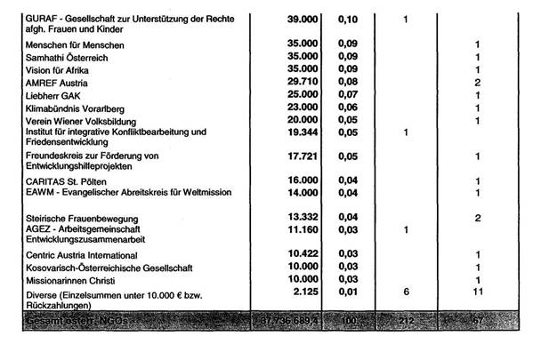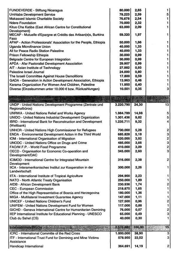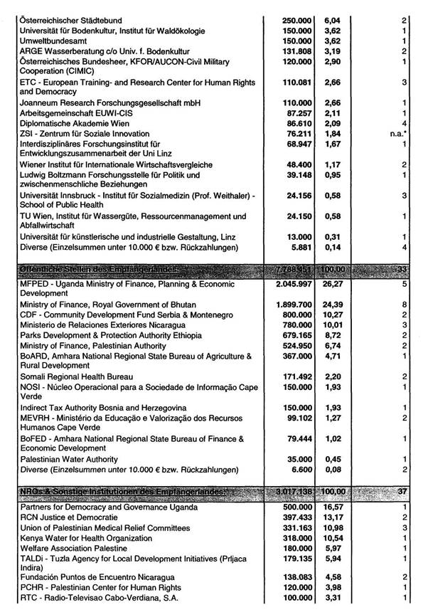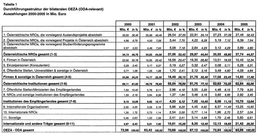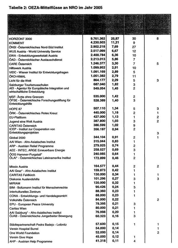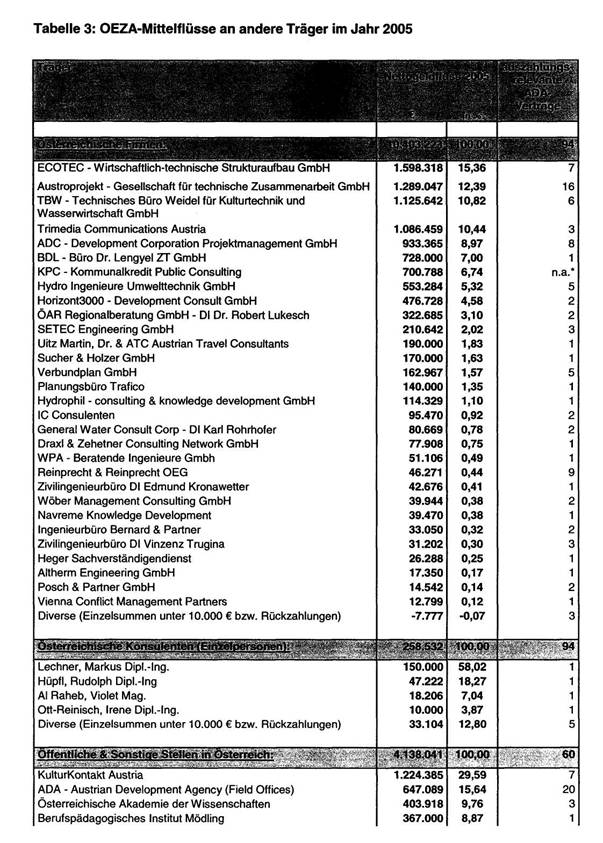 Auflistung für das Jahr 2005 liegt als Tabelle 2 (OEZA-Mittelflüsse