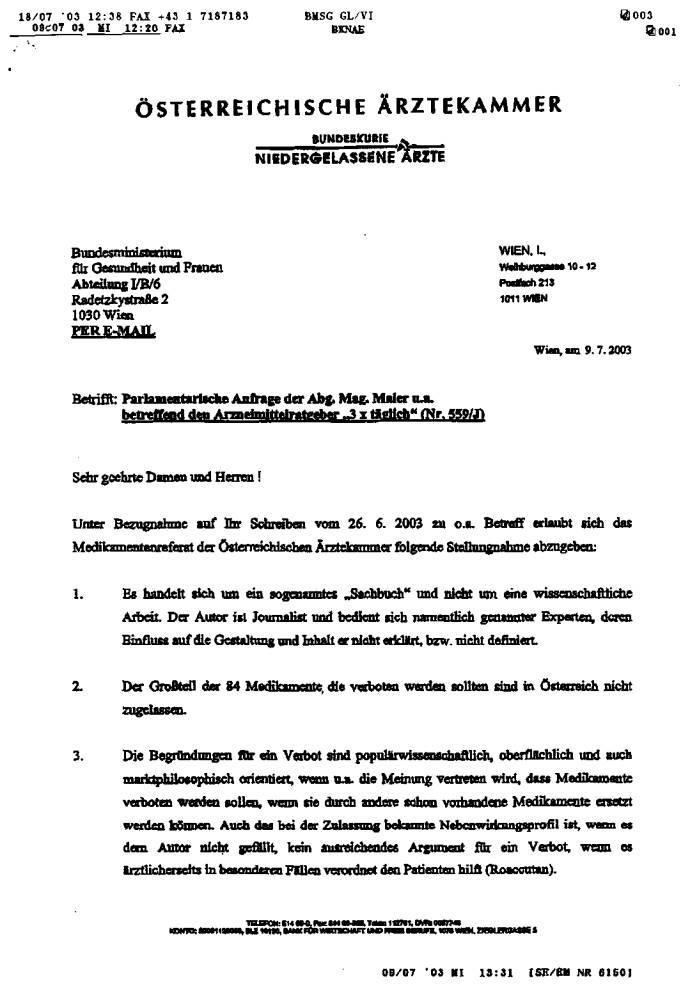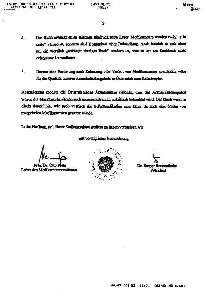 Buch war weder im Obersten Sanitätsrat noch im Arzneimittelbeirat Gegenstand