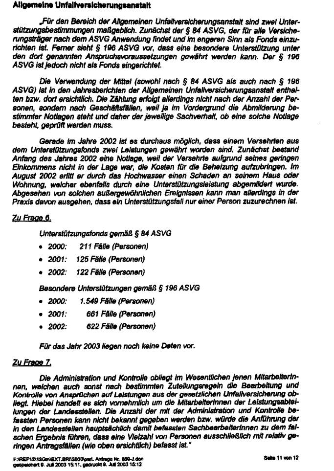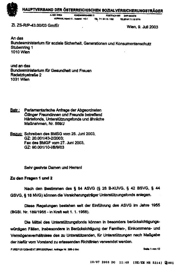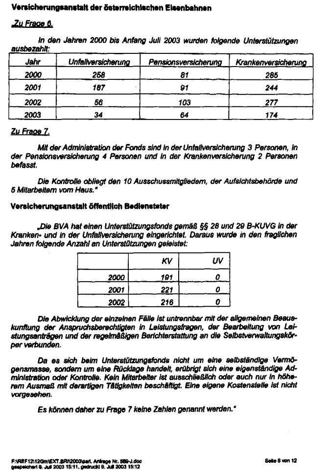die Unterstützungsfonds der Sozialversicherungsträger betrifft, verweise ich