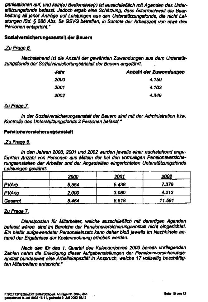 Sozialversicherung (Kranken-, Unfall- und Pensionsversicherung) beantwortet;