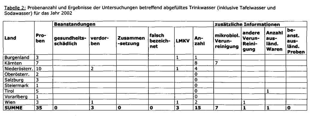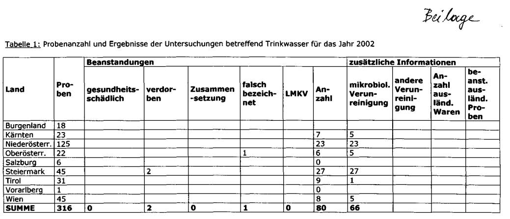 unterliegt somit dem Lebensmittelgesetz 1975 bzw. der Trinkwasserverordnung.