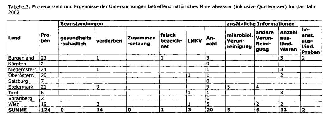 das Jahr 2003 sieht der Probenplan die Ziehung von insgesamt 943 Proben vor.