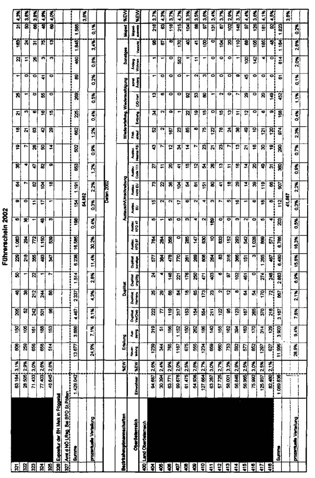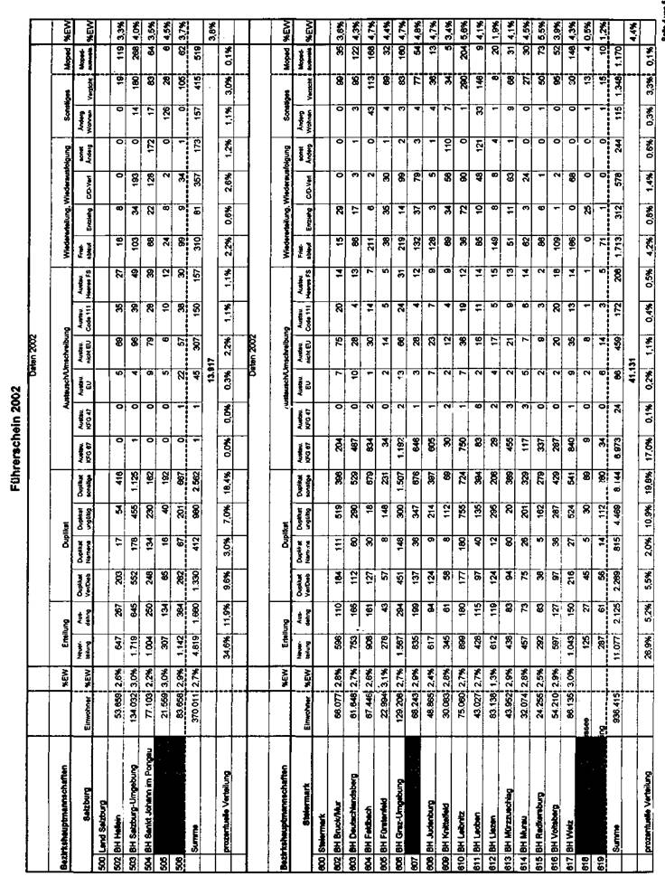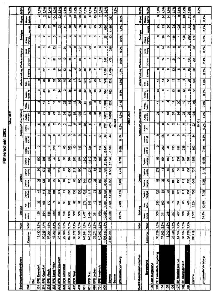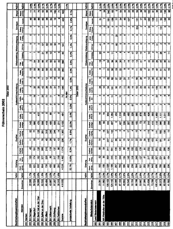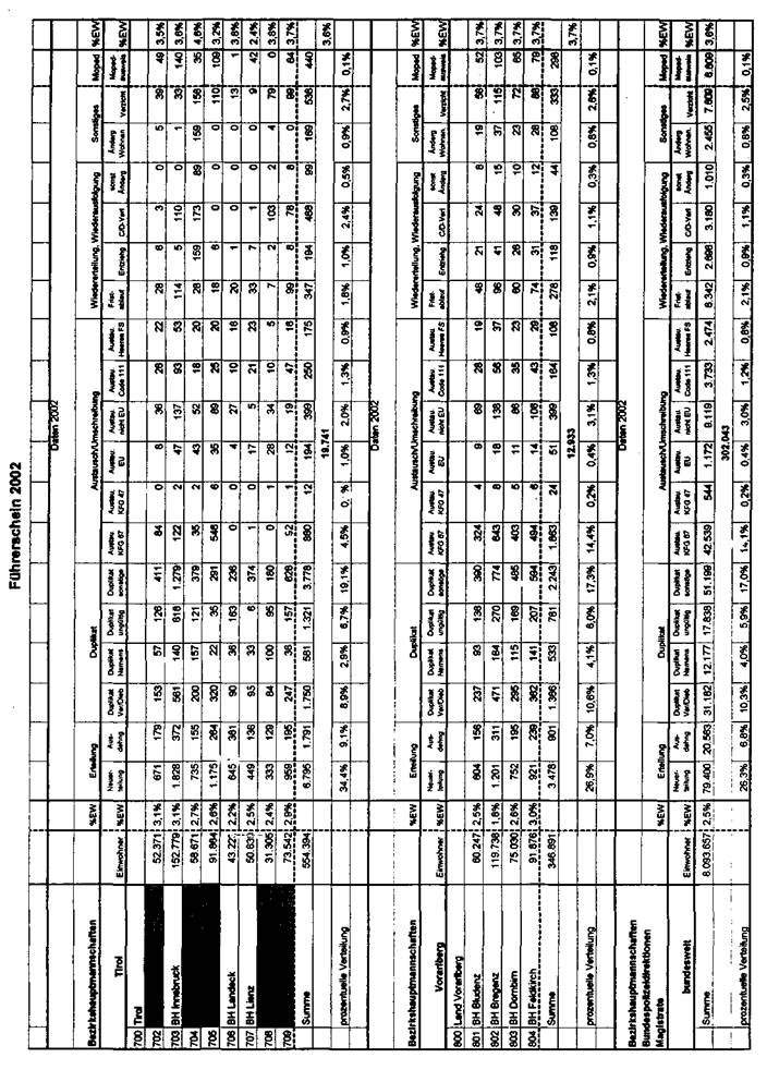 Lenkerberechtigung 2002 ausgestellt (Aufschlüsselung auf die einzelnen