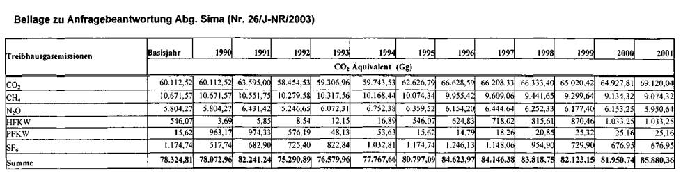 2001 umfasst, betrugen die Emissionen aller sechs „kyotorelevanten"